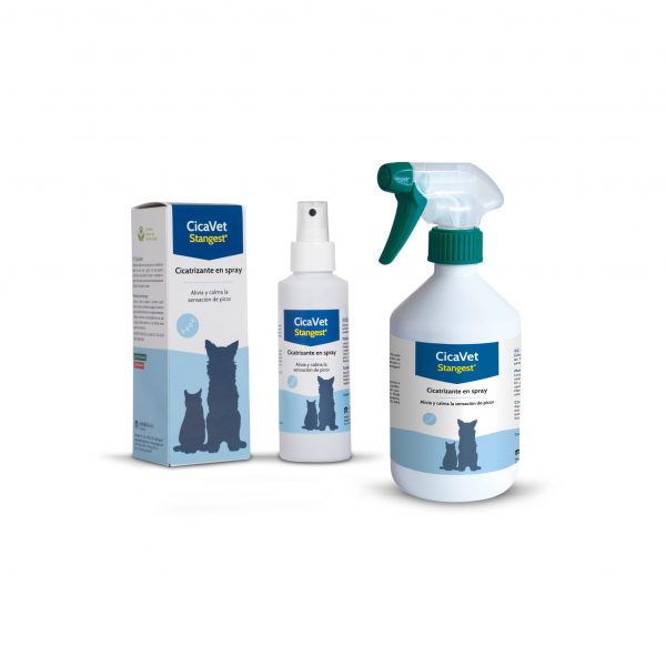 Cicavet es un spray cicatrizante tópico formulado para apoyar la curación natural de heridas, rozaduras y zonas irritadas en los perros. Su fórmula combina extractos vegetales como centella asiática, aloe vera, caléndula y tomillo, que ayudan a estimular el proceso de reparación cutánea, calmar la sensación de picor y mantener la piel flexible sin favorecer la formación de costras duras que puedan incomodar al animal.