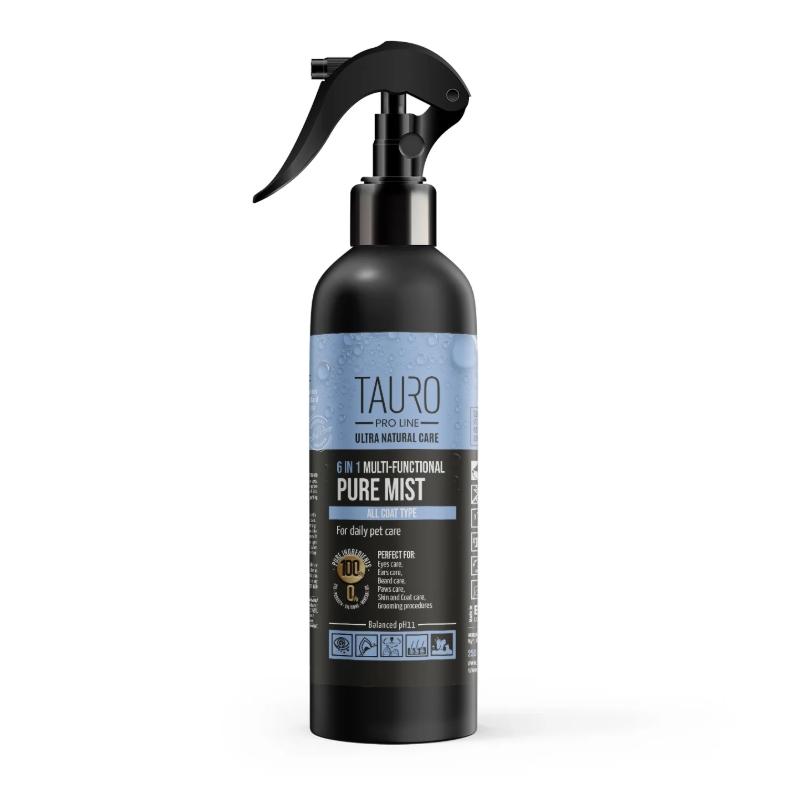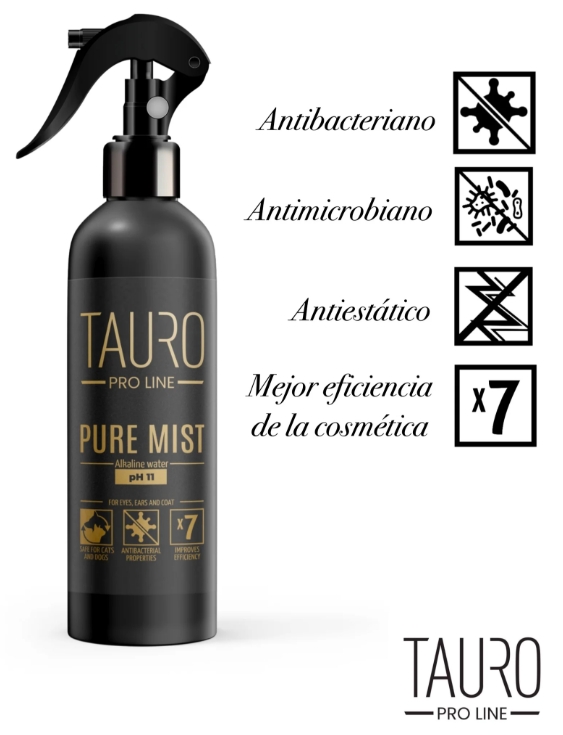 Pulverizador de agua alcalina ionizada (pH11) natural para perros, ideal para mantener la zona periocular, las orejas, las vibrisas, la piel, el pelaje, y las patas limpios entre baños. Su fórmula suave y respetuosa hidrata y protege la piel y facilita el cepillado. Perfecto para uso diario y para todo tipo de manto, incluso sensibles o delicados.